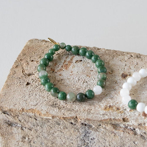 Halskæde med halvædelsten - Jade og hvid agat
